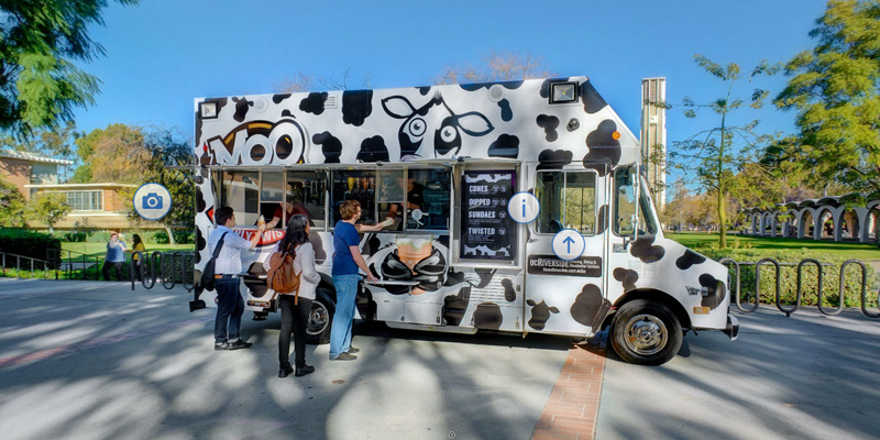 UC Riverside has a great selection of food trucks that feed a lot of students. VPiX 360 courtesy of Jason Sievert of Invision Studio.